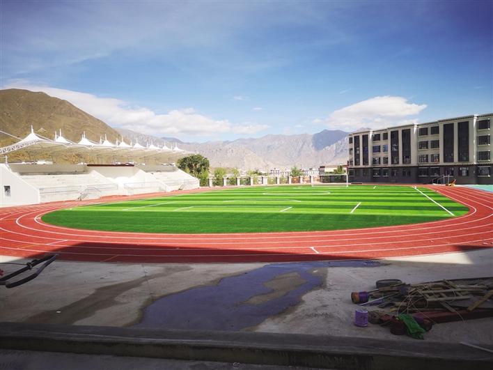為一睹拉薩市城關(guān)區(qū)第六小學(xué)的真容,記者來到拉薩河南岸的慈覺林,沿著格桑路一路前行,在妙光大道與云天路交叉路口看到了已經(jīng)建設(shè)完成的城關(guān)區(qū)第六小學(xué),該小學(xué)位于中國西藏文化旅游創(chuàng)意園內(nèi)。目前,教學(xué)綜合樓、教學(xué)樓、教工宿舍、學(xué)生食堂、操場等已建設(shè)完成,并完成初驗,預(yù)計2020年12月移交城關(guān)區(qū)政府投入使用。學(xué)校內(nèi)寬廣的足球場、紅色的塑膠跑道非常吸引人,“等學(xué)校投入使用后,孩子們就可以在這里踢足球、打籃球,愉快地玩耍了?!崩_市加快教育改革和發(fā)展領(lǐng)導(dǎo)小組辦公室工作人員甲措說。