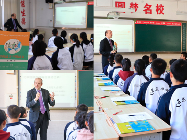 《用英語講中國故事大課堂》領(lǐng)銜主講斯明誠(Symington)在宜川中學(xué)與學(xué)生交流。