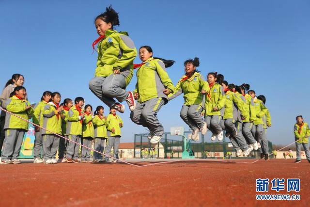 11月12日,學(xué)生在大課間參加集體跳繩。 位于山東省青島市即墨區(qū)的青島藍(lán)谷高新區(qū)東皋埠小學(xué)是一所鄉(xiāng)村學(xué)校,近年來,學(xué)校開展以乒乓球、籃球、跳繩等運(yùn)動(dòng)為主的大課間活動(dòng),讓孩子們?cè)谙硎苓\(yùn)動(dòng)的同時(shí)愉悅身心,增強(qiáng)體質(zhì)。 新華社發(fā)(梁孝鵬攝)