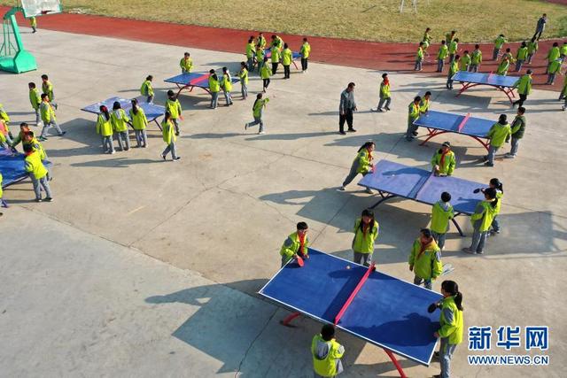 11月12日,學(xué)生在大課間打乒乓球(無人機(jī)照片)。 位于山東省青島市即墨區(qū)的青島藍(lán)谷高新區(qū)東皋埠小學(xué)是一所鄉(xiāng)村學(xué)校,近年來,學(xué)校開展以乒乓球、籃球、跳繩等運(yùn)動(dòng)為主的大課間活動(dòng),讓孩子們?cè)谙硎苓\(yùn)動(dòng)的同時(shí)愉悅身心,增強(qiáng)體質(zhì)。 新華社發(fā)(梁孝鵬攝)