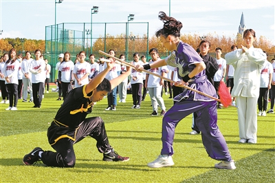 近日,華東政法大學(xué)在松江校區(qū)舉行首屆中華傳統(tǒng)體育大會(huì),300余名華政師生組成的代表隊(duì)進(jìn)行了八段錦展示。近年來,華東政法大學(xué)積極推廣中華傳統(tǒng)體育項(xiàng)目,以體育人、以文化人,引導(dǎo)師生傳承和發(fā)揚(yáng)中華優(yōu)秀傳統(tǒng)文化,增強(qiáng)文化自信。