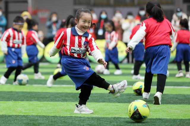 12月7日,淮北市第二實驗幼兒園的小朋友在足球課上學習踢足球。安徽省淮北市第二實驗幼兒園是一所“全國足球特色幼兒園”。該園把足球列入幼兒園體育課教學內(nèi)容,通過開設幼兒足球趣味練習、足球游戲等特色課程,向孩子們傳授足球基本知識和技巧,從小培養(yǎng)孩子們對足球的興趣,讓他們感受足球運動的魅力,健康快樂成長。新華社發(fā)(萬善朝 攝)