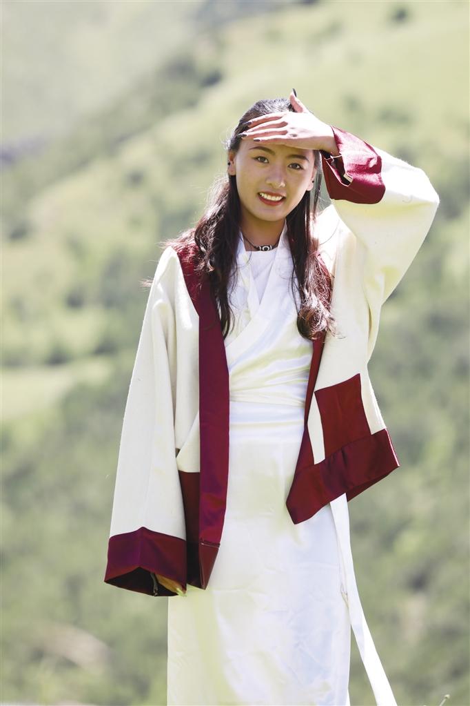 為此,覺美極其講究衣服顏色及邊花的選擇和應(yīng)用,不管用什么料子都要最大限度發(fā)揮“藝卓紫媽”服飾特色,最終形成了肥大、長袖、寬腰、右襟的品牌特點,獨創(chuàng)無需量體裁衣的直線服裝。說起品牌打造和藝術(shù)走秀的關(guān)系,覺美表示:“我自己平常特別喜歡穿本民族服裝,也參加過很多走秀活動,希望可以將藏裝推向世界。以前那曲沒有服飾走秀,所以我想讓更多的人穿上傳統(tǒng)服飾,讓這種獨特的美被更多人看到?!?/p>