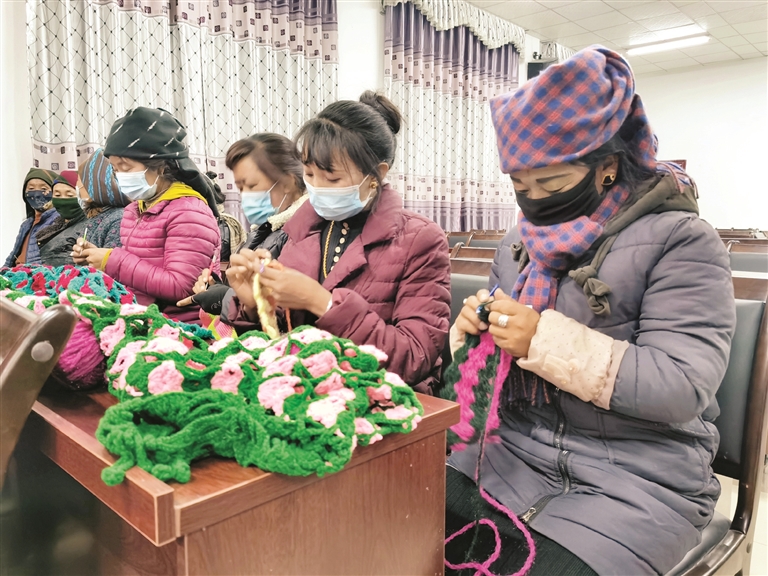 近日,在邦堆鄉(xiāng)克日村,村婦聯(lián)組織20余名婦女集中開展了“巾幗夜校領(lǐng)學(xué)”活動,學(xué)員們現(xiàn)場進(jìn)行手工編織。今年57歲的歐珠措姆2019年開始學(xué)習(xí)手工編織,現(xiàn)在已經(jīng)能夠編織成品進(jìn)行銷售了。據(jù)了解,克日村婦女手工編織成員經(jīng)過兩年培訓(xùn),目前均已能夠生產(chǎn)出單個(gè)產(chǎn)品。通過售賣產(chǎn)品,農(nóng)閑時(shí)期平均每人至少能增加800元的收入。