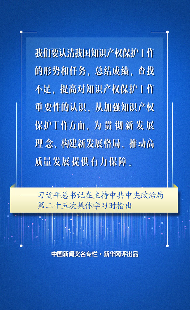 全面加強知識產權保護工作 激發(fā)創(chuàng)新活力推動構建新發(fā)展格局