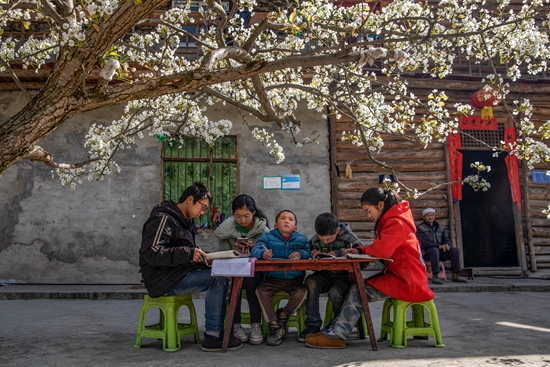 2020年4月26日,重慶市城口縣高楠鄉(xiāng)方斗村村民吳明安的院壩里,5名學(xué)生在全縣中小學(xué)復(fù)學(xué)前一天抓緊時(shí)間完成家庭作業(yè)。隨著疫情防控常態(tài)化,全國(guó)多個(gè)省市陸續(xù)復(fù)學(xué)。周健/攝