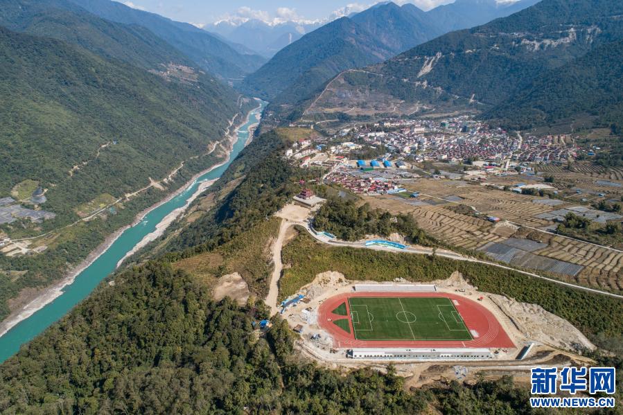 這是墨脫縣新修建的11人制足球場(2月13日攝,無人機(jī)照片)。新華社記者 羅博 攝