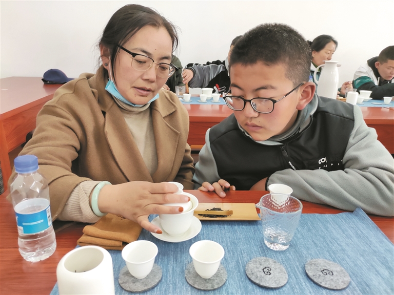 圖為學(xué)生和家長(zhǎng)一起學(xué)習(xí)、體驗(yàn)茶藝禮儀知識(shí)。拉薩融媒記者 趙耀鐵攝