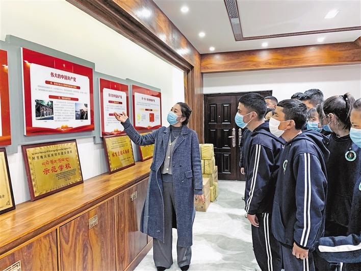 圖為拉薩阿里地區(qū)高級中學(xué)學(xué)生代表參觀黨史和學(xué)校國防教育成果展。張宇 攝