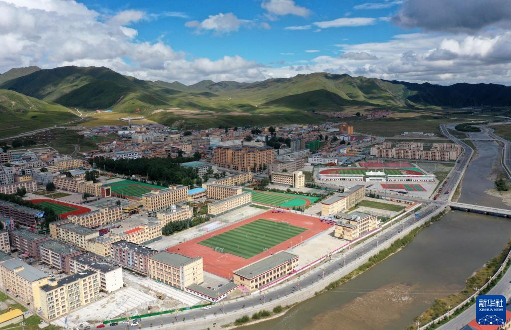 這是8月30日拍攝的碌曲縣藏族中學(xué)(無人機(jī)照片)。新華社記者 杜哲宇 攝
