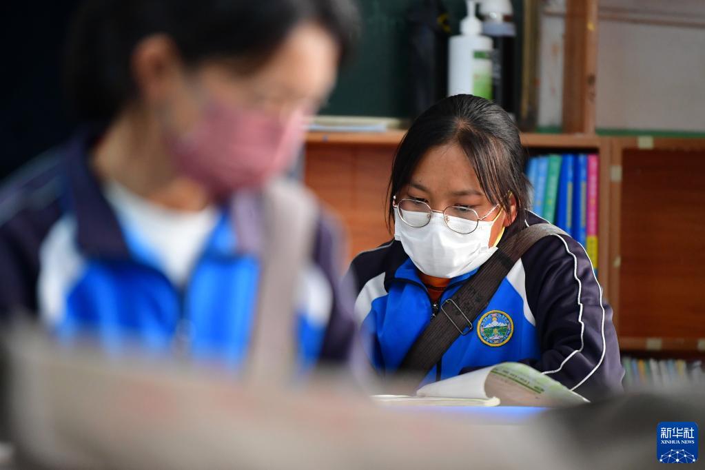 碌曲縣藏族中學(xué)的高三學(xué)生在教室里看書(8月30日攝)。新華社記者 陳斌 攝