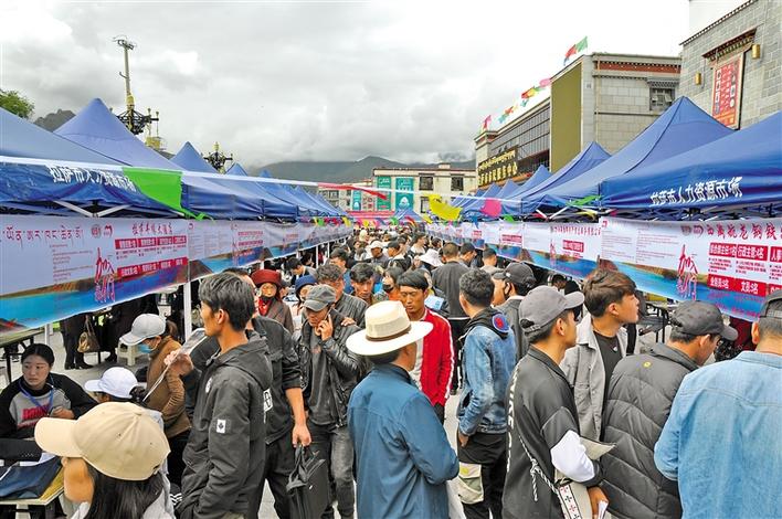 拉薩市農(nóng)牧民轉(zhuǎn)移就業(yè)促增收大型專場招聘會現(xiàn)場。