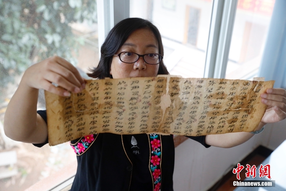 9月8日,云南楚雄,修復(fù)師檢查剛修復(fù)出來的古籍。楚雄彝族文化研究院位于云南省楚雄彝族自治州楚雄市,是云南省從事彝族文化專門研究的社會科學(xué)研究機(jī)構(gòu)。該院始終注重對彝文古籍的收集、翻譯、整理等搶救性工作,現(xiàn)已收集了近3000部彝文古籍。 中新社記者 李嘉嫻 攝