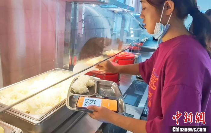 圖為9月中旬,酒泉職業(yè)技術(shù)學(xué)院學(xué)生用“自助打飯神器”按克打飯,按需取餐?!∈缝o靜 攝