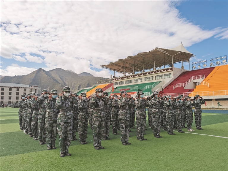 該校學(xué)生工作處主任次仁班旦說:“在校黨委的高度重視下,多次醞釀、精心部署,學(xué)校開展了2021級(jí)新生軍訓(xùn)。我們希望通過軍訓(xùn)增強(qiáng)學(xué)生的愛國主義意識(shí),增強(qiáng)國防教育意識(shí),把規(guī)矩、紀(jì)律納入軍訓(xùn)的課程當(dāng)中來,讓學(xué)生守規(guī)矩、學(xué)知識(shí)、學(xué)技能,鍛煉學(xué)生的意志品質(zhì)。”