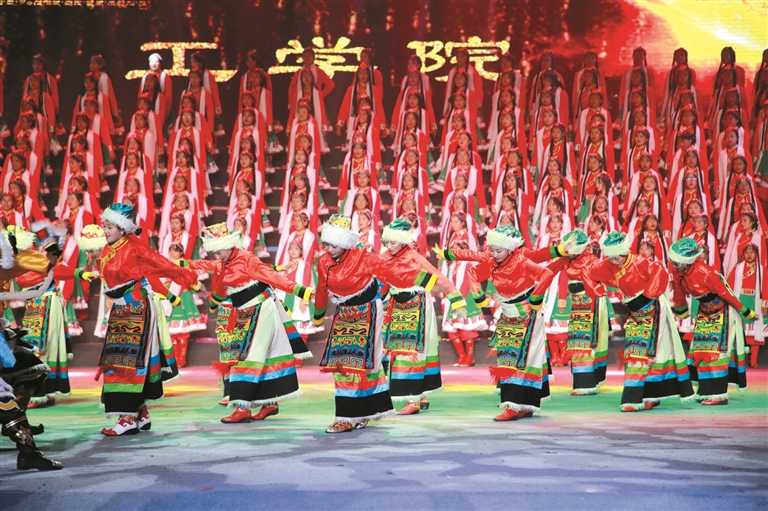 當(dāng)天晚上,慶祝西藏大學(xué)辦學(xué)70周年文藝晚會(huì)在西藏大學(xué)河壩林校區(qū)舉行。