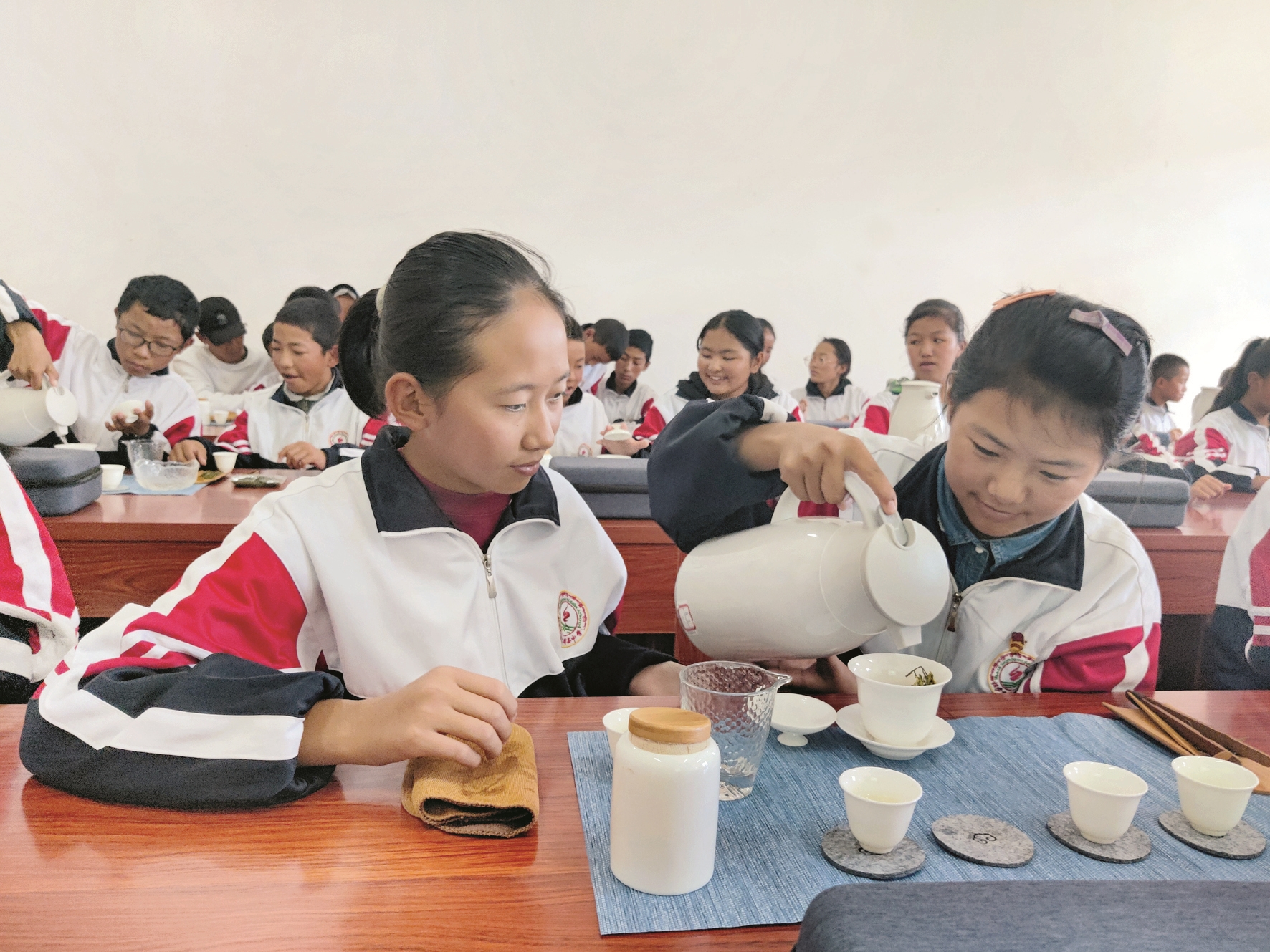 為了培養(yǎng)同學(xué)們的動手能力,激發(fā)對中華茶文化的學(xué)習興趣,提高綜合文化素養(yǎng),拉薩市教育局青少年實踐基地定期組織學(xué)生開展茶文化學(xué)習實踐活動,在茶香氤氳中,學(xué)生們溫杯潔具、觀茶敬茶,感受茶的雅致魅力,體會茶文化的深厚內(nèi)涵。