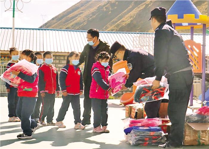 日喀則康布邊境派出所給康布鄉(xiāng)小學(xué)學(xué)生發(fā)放捐贈(zèng)物資