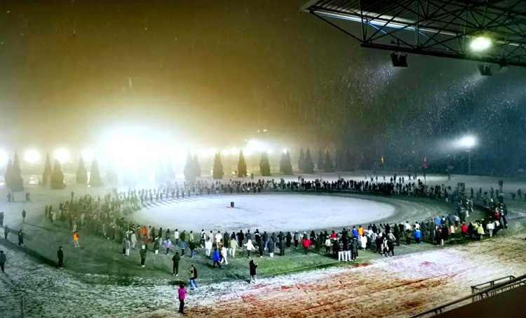 中國(guó)西藏網(wǎng)訊 紅燈高掛,年味已濃的古城咸陽(yáng),瑞雪紛紛。近日,還未離校返鄉(xiāng)的西藏民族大學(xué)學(xué)生們迎著紛揚(yáng)的雪花,踩著歡樂(lè)的音樂(lè),自發(fā)匯集在操場(chǎng),將思鄉(xiāng)情融入和諧美好的鍋莊舞中。