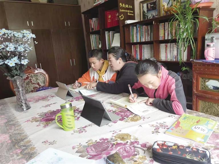 中國(guó)拉薩SOS兒童村的媽媽為孩子輔導(dǎo)作業(yè)。記者 王靜 攝
