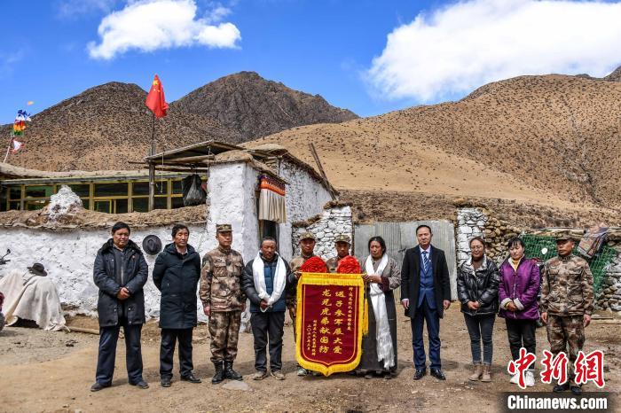 圖為拉薩市林周縣武裝部和退役軍人事務(wù)局慰問(wèn)旁多鄉(xiāng)入伍兄弟?!≈斐?攝