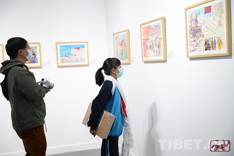 此次展出的百余幅作品均為拉薩市中小學(xué)生誠意之作,他們用畫筆描繪出西藏和諧美麗、文明富強的新面貌,雖稚嫩卻靈氣十足,雖年少卻志在萬里。數(shù)尺之雅,足顯拳拳之心;片紙之外,可見耿耿情懷。漫步在展覽現(xiàn)場,一幅幅色彩鮮活、筆觸稚嫩的繪畫作品,蘊涵著小畫家們對美好生活的追求、對幸福生活的感恩、對未來生活的憧憬,展現(xiàn)出他們熱愛黨、熱愛祖國、熱愛家鄉(xiāng)、熱愛生活積極向上的精神面貌。