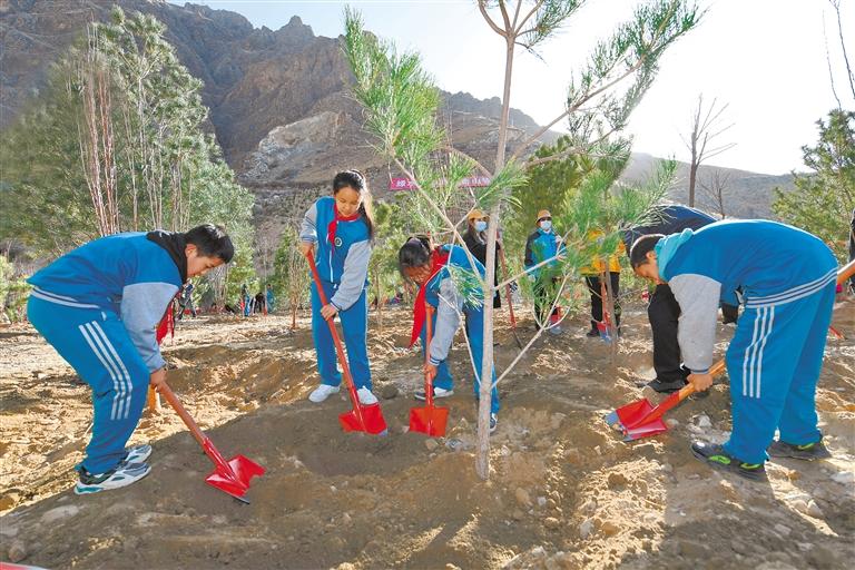 為踐行綠水青山就是金山銀山理念,積極推進生態(tài)文明建設,日前,拉薩市姜昆黃小勇希望小學學生和社會各界人士,共同開展義務植樹活動。