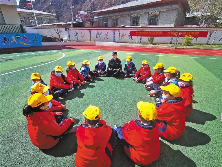 圖為林芝邊境管理支隊金東邊境派出所民警向小學生宣講國家安全知識。徐華升 攝