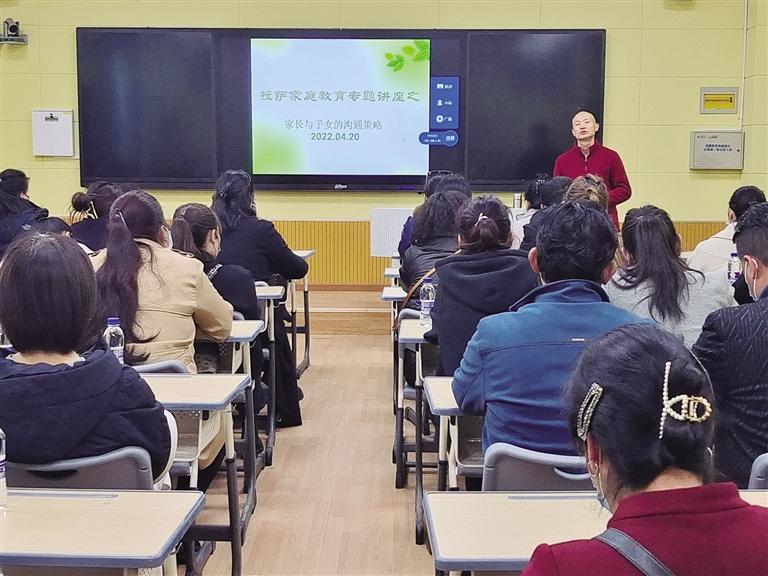 據(jù)拉薩市教育局青少年實踐基地主任扎西平措介紹,家庭教育在孩子成長過程中發(fā)揮著重要作用,為促進學生全面發(fā)展,營造良好的教育生態(tài),拉薩市教育局今年將在全市開展家庭教育系列活動,并將出臺關于家庭教育工作的實施意見。“格?;ā奔彝ソ逃嬷v堂在納金小學開設,是此次系列活動的開始,主要是為了達到家校共同育人的目的,為學生健康快樂成長保駕護航。