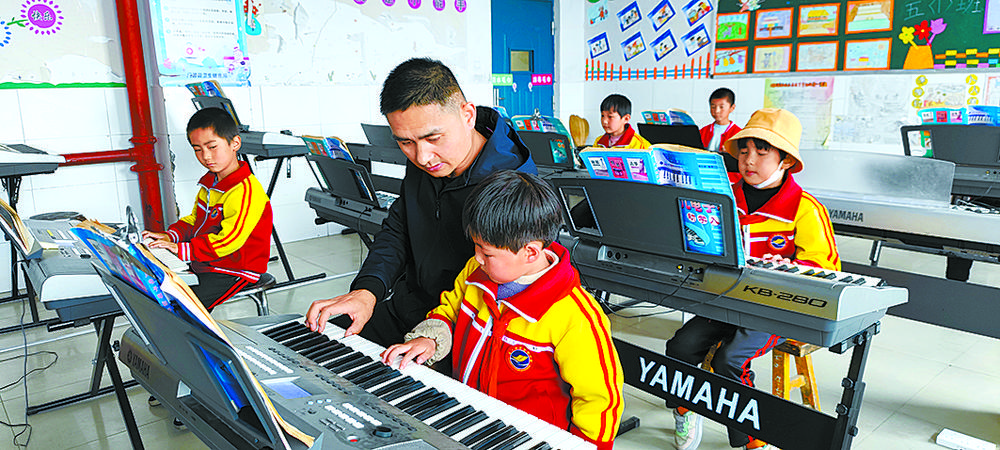 “我會教他們認(rèn)樂譜、怎么卡節(jié)奏、唱什么聲部,經(jīng)過長期堅持學(xué)習(xí),孩子們進(jìn)步很快?!敝艿猛呏笇?dǎo)學(xué)生彈奏電子琴的指法,邊笑著和我們聊到,自從2017年,學(xué)校配備了專門的音樂教室,每堂課他都會堅持使用樂器,以此來培養(yǎng)孩子們的音樂素養(yǎng),效果非常不錯。