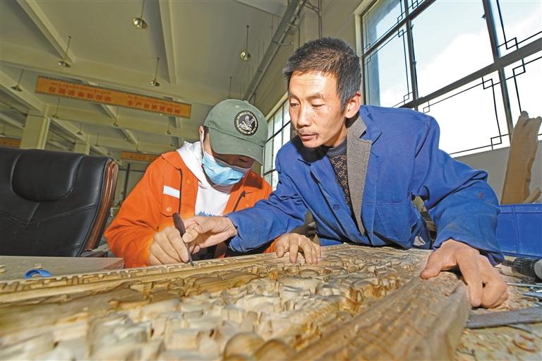 圖為拉薩市第二中等職業(yè)技術(shù)學校學生在學習制作木雕。記者 唐斌 攝
