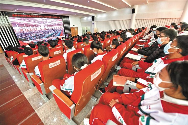 圖為拉薩中學(xué)的師生觀看慶祝中國共產(chǎn)主義青年團(tuán)成立100周年大會直播。 記者 唐斌 攝