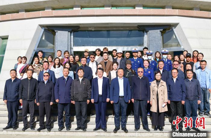 圖為簽約儀式上媒體單位負(fù)責(zé)人跟西藏民族大學(xué)的實(shí)習(xí)生合影。 貢嘎來松 攝