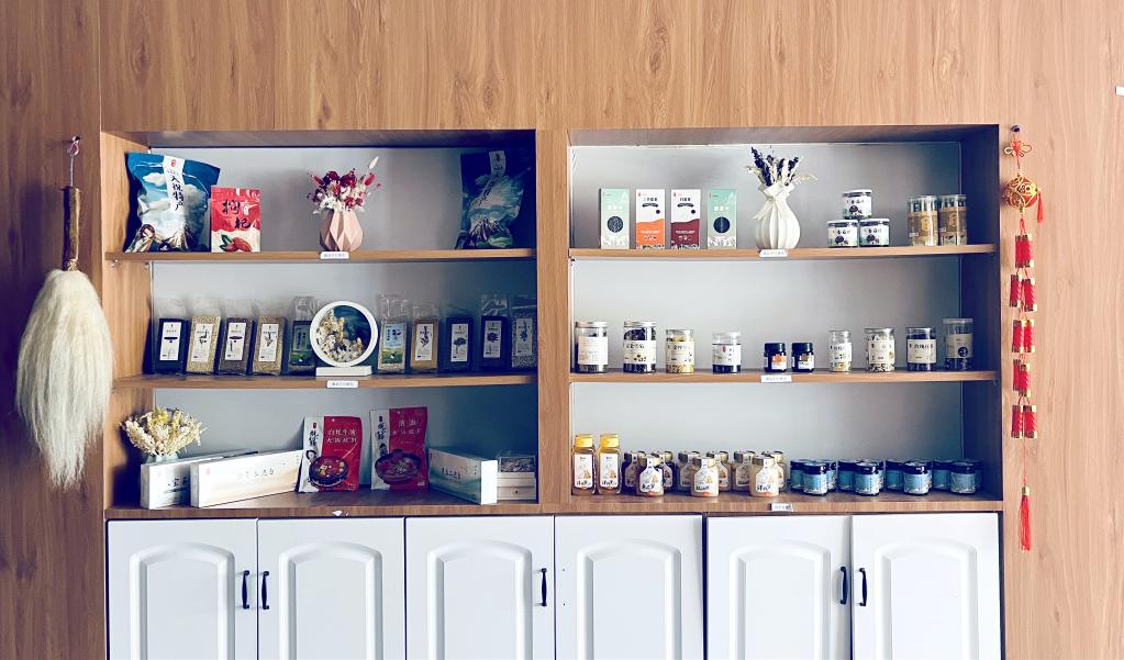 公司電商銷售展廳內,陳列著各式各樣的特色農產品。受訪者供圖
