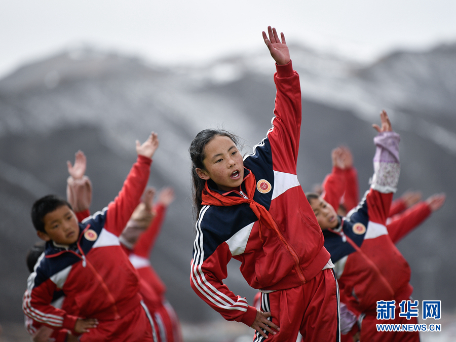 在果洛藏族自治州甘德縣下貢麻鄉(xiāng)寄宿制中心小學,學生在上體育課。(資料圖)新華社記者 張龍 攝
