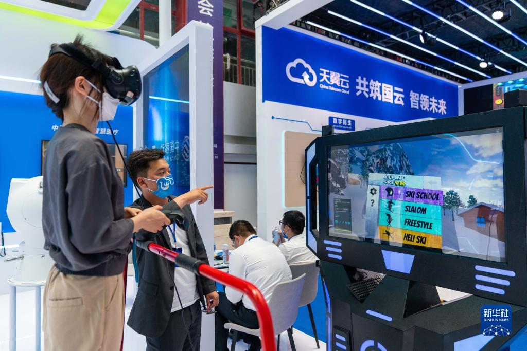 參觀者在會(huì)場體驗(yàn)VR游戲。新華社記者周荻瀟 攝