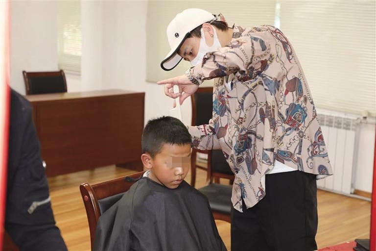 理發(fā)師為殘疾學(xué)生理發(fā)。圖由西藏阜康天使基金會(huì)提供