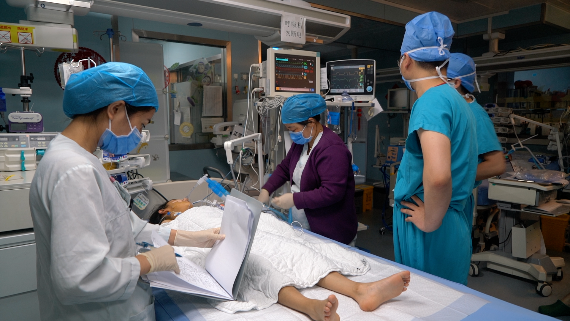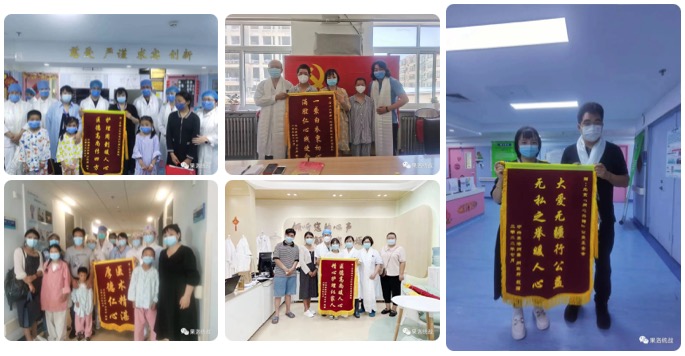 圖為患兒出院前向院方和“同心共鑄中國心”基金會敬送錦旗