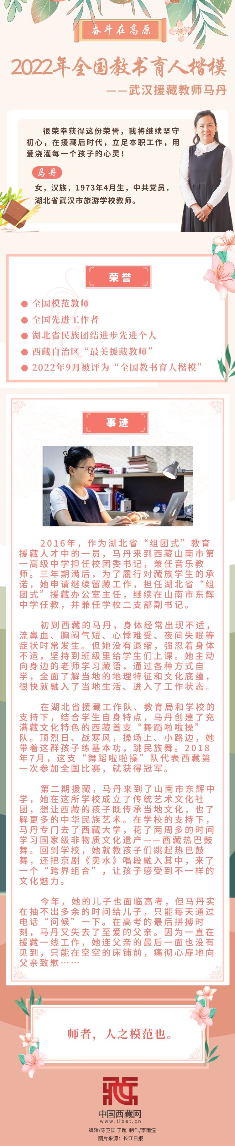 【奮斗在高原】2022年全國教書育人楷?!錆h援藏教師馬丹