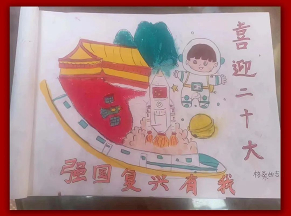 中國西藏網(wǎng)訊 為慶祝黨的二十大勝利召開,西藏自治區(qū)日喀則市委宣傳部、市文化局主辦的“共慶盛會 祝福祖國”日喀則市第三屆少兒才藝大賽舉行。圖為日喀則市第三屆少兒才藝大賽美術(shù)類獲獎作品。(中國西藏網(wǎng) 圖文來源:文化日喀則微信公眾號)