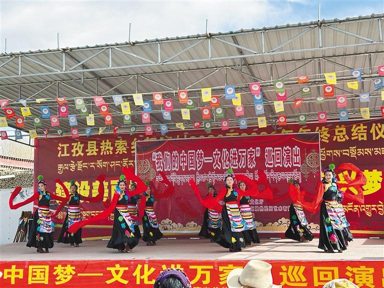 連日來,“我們的中國夢——文化進萬家”巡回演出活動走進日喀則市江孜縣。據(jù)了解,此項活動是由西藏自治區(qū)文化廳以向社會力量購買公共文化服務(wù)形式,組織拉薩市城關(guān)區(qū)娘熱民間藝術(shù)有限公司開展的巡回演出活動。活動緊緊圍繞學(xué)習(xí)宣傳貫徹黨的二十大精神的主題,以走進萬家、服務(wù)百姓為宗旨,堅持以人民為中心的工作導(dǎo)向,動員和組織開展形式多樣、內(nèi)容豐富、線上線下相結(jié)合的文化活動,滿足基層群眾文化需求,豐富人民群眾文化生活,凝聚奮進新時代新征程的強大精神力量。