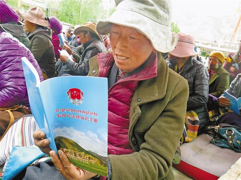 圖為村民認真學習《農(nóng)牧民法律知識手冊》。記者 巴桑旺姆 攝