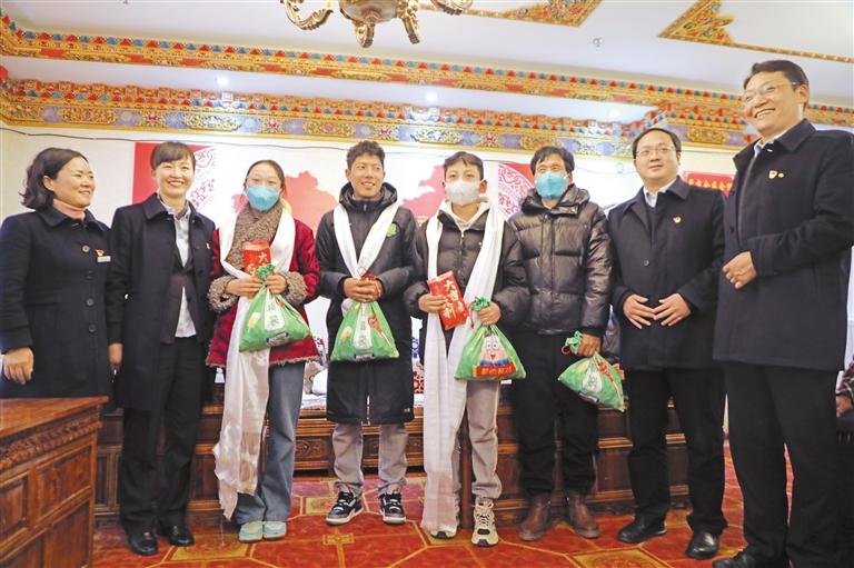 圖為藏歷新年來臨之際,該支行三個(gè)支部為恩惠苑社區(qū)貧困生送去幫扶助學(xué)資金2.6萬元。記者 格桑倫珠 攝