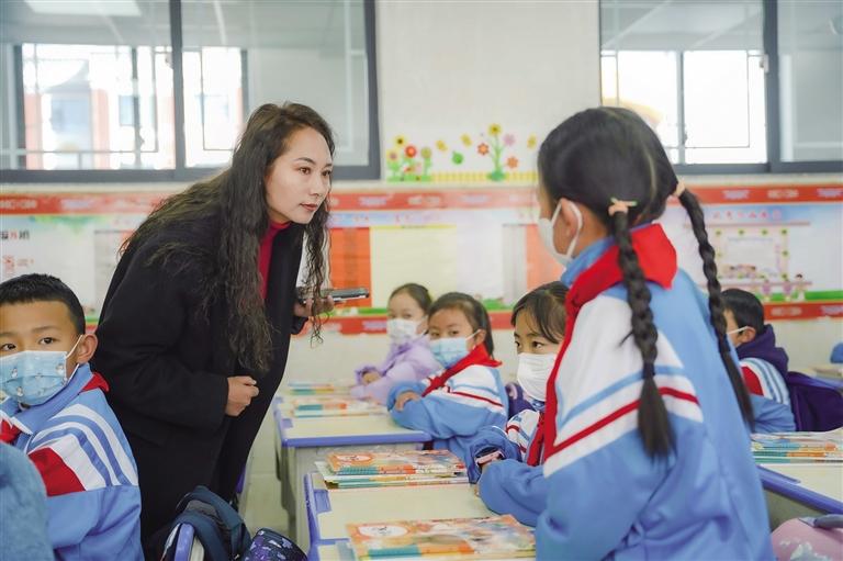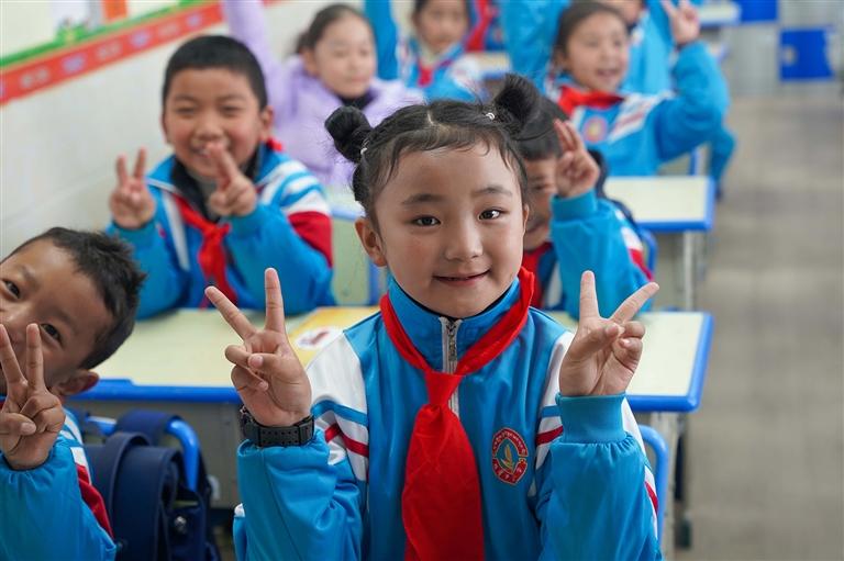 除了激動的家長,學(xué)生們的心情也很激動。在校門口,扎西旺扎和索朗培塔大老遠就認出了對方,倆人快速跑向?qū)Ψ?,雖然戴著口罩,眼里卻充滿笑意?!案袅四敲淳媒K于見面了,太激動了,很想念我的好朋友。”扎西旺扎笑著說。你假期看了什么動畫片、又新學(xué)了什么東西、去哪里玩了、作業(yè)完成得如何……太久沒見了,小伙伴們再次見面,分外親熱,大家一起嬉笑打鬧著進入校園。