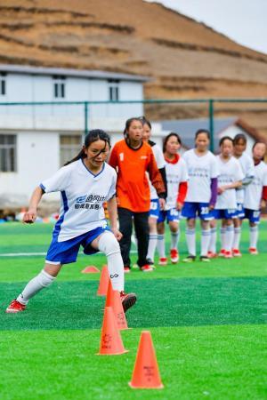 于是,2015年,瓦吾小學組建起第一支足球隊,2018年又組建起女足球隊。沒有塑膠操場,山路就是跑道;沒有裝備,就用廢舊輪胎進行負重訓練;即使遇到風霜雨雪天氣,訓練也不輕易間斷……現(xiàn)在學校超過半數(shù)的學生在踢球,已有38名女足隊員。