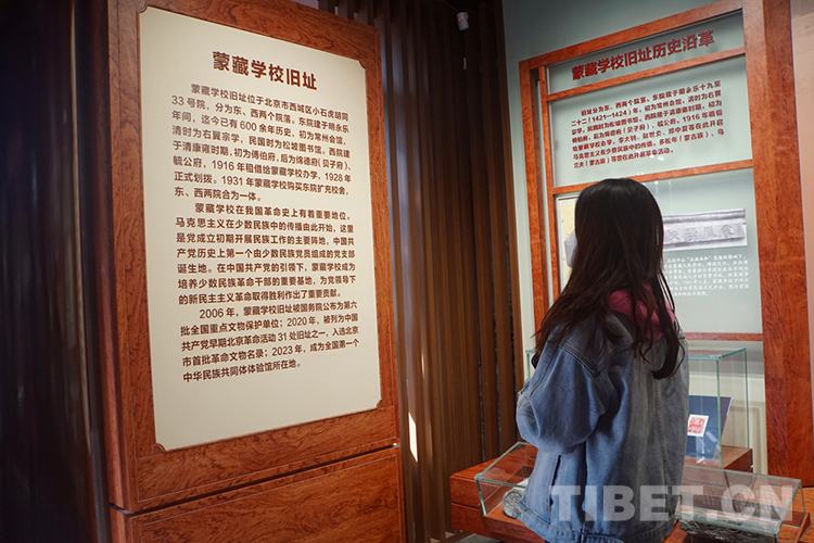 舊址西院,“蒙藏學(xué)校舊址專題展”主要展示舊址歷史沿革和革命活動,蒙藏學(xué)校學(xué)生參加五四運動;李大釗、鄧中夏、趙世炎等對蒙藏學(xué)校青年的馬克思主義啟蒙和革命引導(dǎo);烏蘭夫、多松年 等 蒙藏學(xué)校進(jìn)步青年參加校內(nèi)外革命活動……突出展現(xiàn)中國共產(chǎn)黨成立后在這里組織開展革命斗爭的歷史。“中華一脈 同心筑夢”主題展分為“共同締造新中國”“團(tuán)結(jié)建設(shè)新社會”“攜手奮斗繁榮路”“同心奮進(jìn)新時代”4個部分。展出照片420多幅,實物、文獻(xiàn)、檔案280余件,藝術(shù)展 項 18項,重點展示新時代民族工作取得的新的歷史性成就。