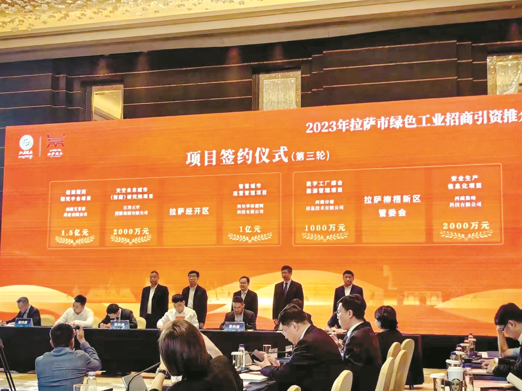 4月17日,2023年拉薩市綠色工業(yè)招商引資推介會暨項目簽約儀式在南京舉行,活動由拉薩市人民政府、西藏自治區(qū)招商局、江蘇援藏前方指揮部主辦,拉薩市商務(wù)局、拉薩經(jīng)濟(jì)技術(shù)開發(fā)區(qū)聯(lián)合承辦。江蘇省商務(wù)廳副廳長倪海清、江蘇省工業(yè)和信息化廳二級巡視員宋旭東、西藏自治區(qū)招商局副局長次旦格來應(yīng)邀出席活動并致辭,簽約企業(yè)代表、拉薩市各縣(區(qū))、經(jīng)濟(jì)功能園區(qū)分管招商工作負(fù)責(zé)人以及知名企業(yè)代表近140余人參加推介會。本次推介會共簽約項目15個,協(xié)議投資達(dá)32.3億元。