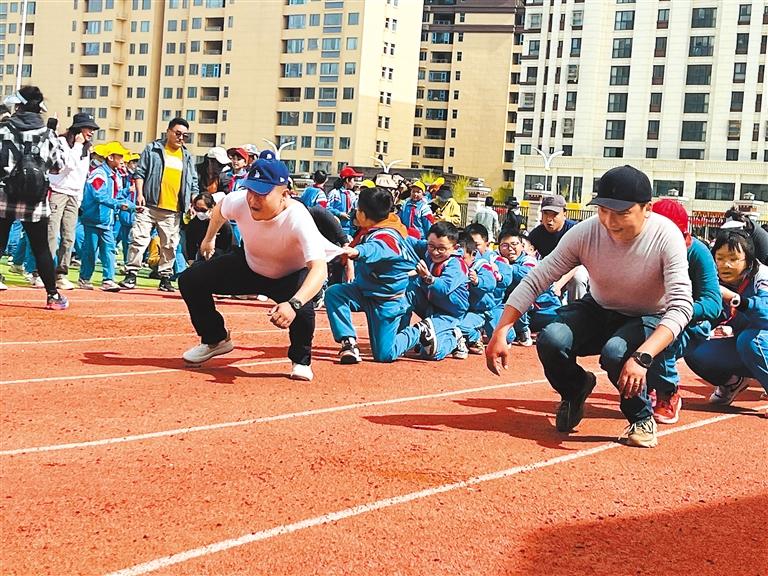 放飛春天的夢(mèng)想,播撒希望的種子,為激發(fā)同學(xué)們對(duì)體育運(yùn)動(dòng)的興趣,豐富校園文化體育氛圍,促進(jìn)家校之間的交流,讓孩子體驗(yàn)到親子運(yùn)動(dòng)的快樂(lè),近日,拉薩市第一小學(xué)教育城分校舉辦首屆親子趣味運(yùn)動(dòng)會(huì)。圖為學(xué)生及家長(zhǎng)參加接力比賽。[詳細(xì)]