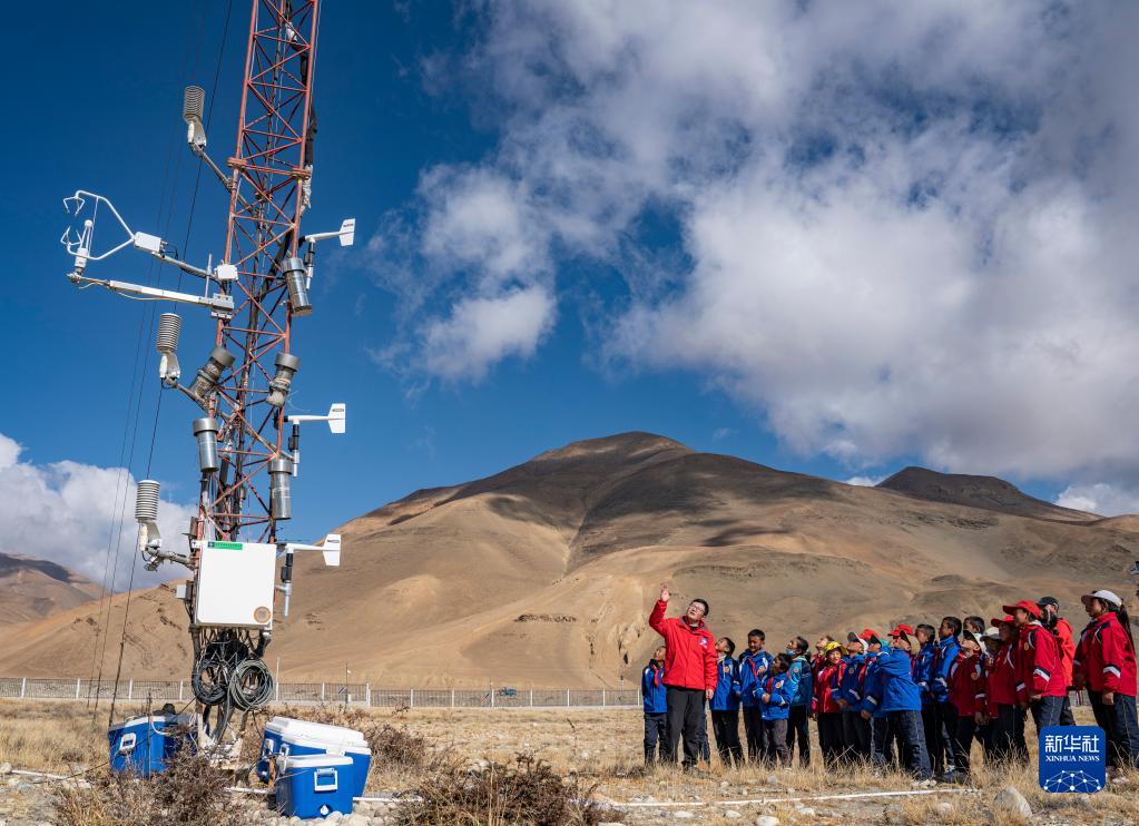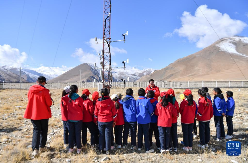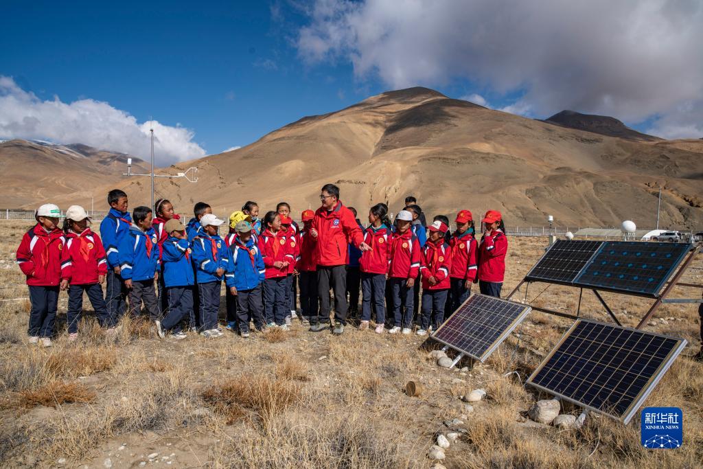 5月15日,扎西宗鄉(xiāng)完全小學(xué)的學(xué)生們在珠峰站參觀學(xué)習(xí)。新華社記者 晉美多吉 攝