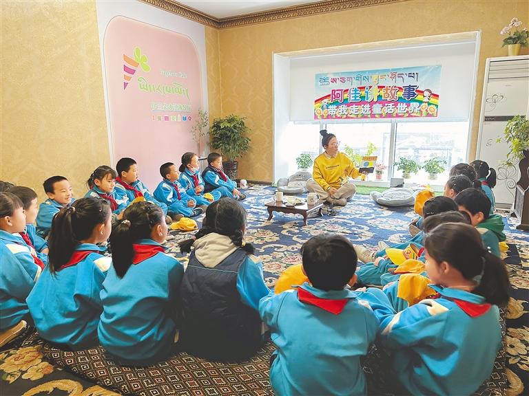 圖為孩子們?cè)谡J(rèn)真聽故事。記者 格桑倫珠 攝